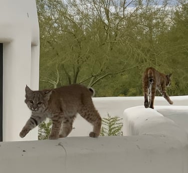 Feel free to open up the windows and let the fresh air inside. You may have to hop on the desk to reach the top latches of the bedroom window. Go for it. You may not want to sleep with the main room windows open during the night. We saw a mountain lion roaming around the pool area very early one morning. We have also had two separate bobcat visits in the middle of the afternoon.