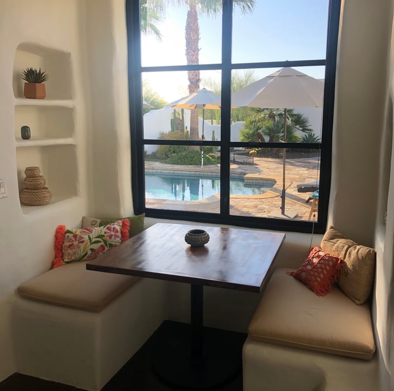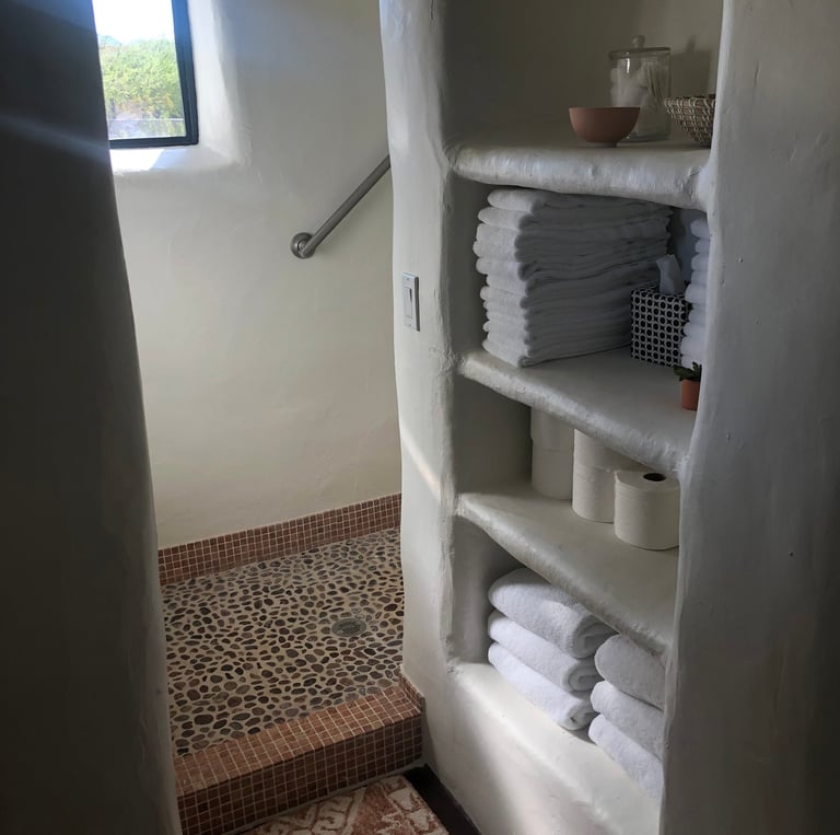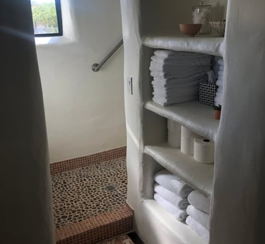 Our little casita has much of what you need to make your stay comfortable. The main room offers a dining table that seats four. There is a twin sleeper sofa with a foam comfort mattress that easily sleeps one adult or two children. Our television has access to Netflix and other streaming services.